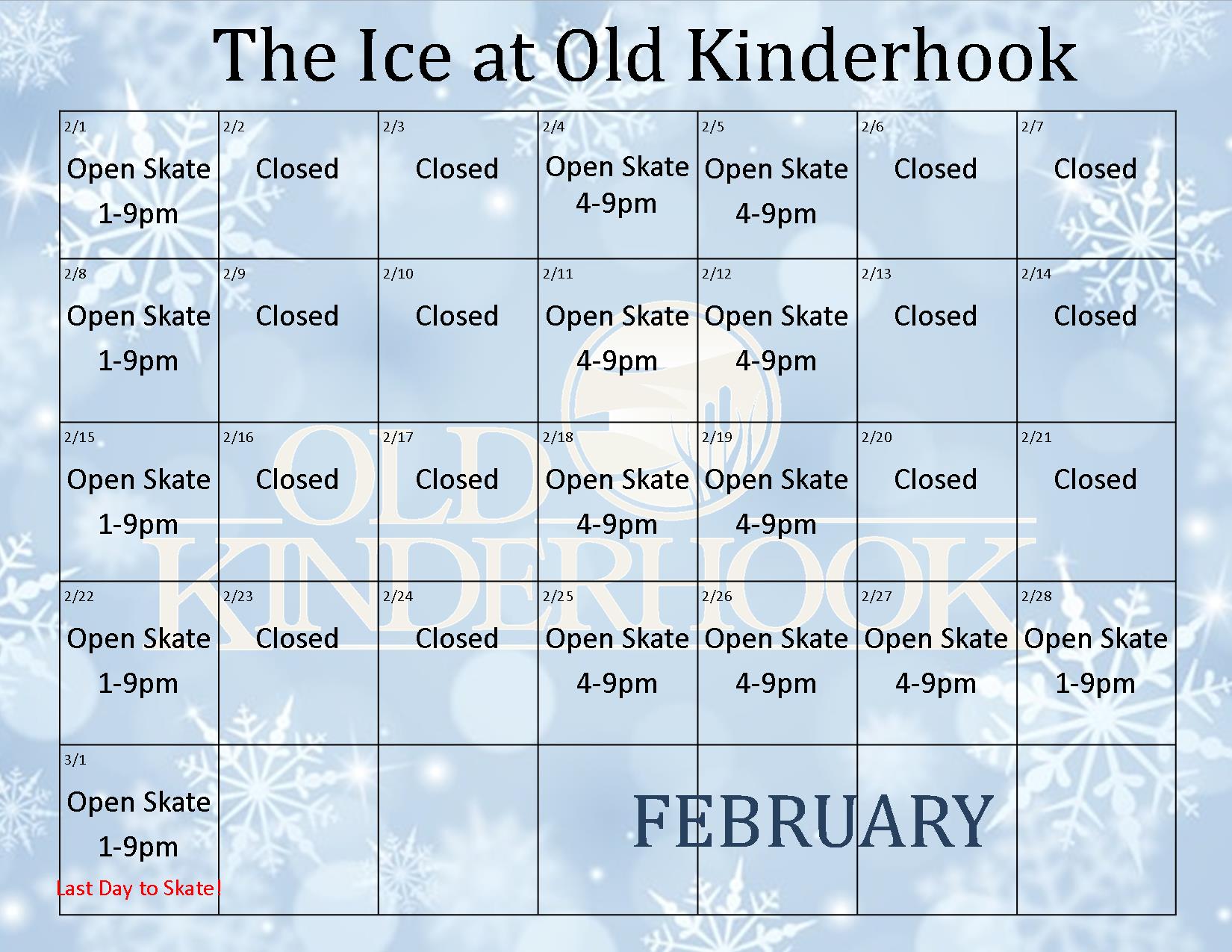 Q: What are the hours of operation for Old Kinderhook’s ice rink?